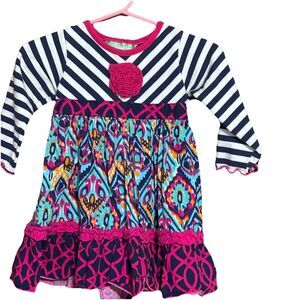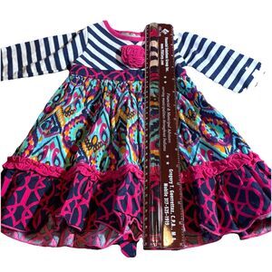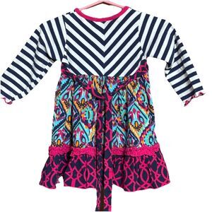 Sage & Lilly Girls Long Sleeve dress striped & Tribal Print Mix Pink , Black 9M