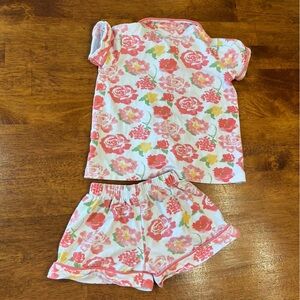 Sage & Lilly girls orange pink floral two piece button up pajamas size 2T