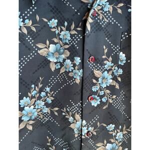 Sage Men's Vintage 70s Hawaiian Sports Wear 100% Polyester Floral Black Medium
