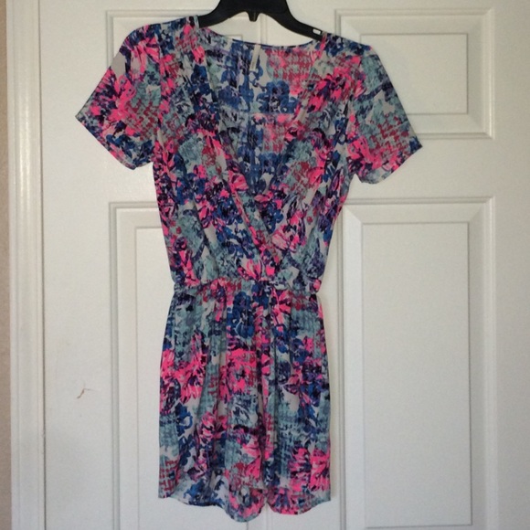 This romper is one of my favorites. I've only worn it twice and every time I got loads of complements. It has pops of neon pink, royal blue, teal and bits of purple and black through out the pattern. Still looks completely new! I bought it from a small boutique near my area.