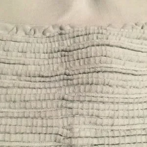 Incredibly unique textural element to incorporate into your wardrobe! Made from a gauze-like fabric and ruffled up into tight ridges that make for a thick, opaque and flattering body-con style that is much better than typical bandage styling! Not to mention the modern monochromatic sage coloring that is one of my personal favorite trending colors! Pairs well with gray, white, pastels or bold red - or any patterned top that incorporates this lovely prairie hue! Like new, no defects.