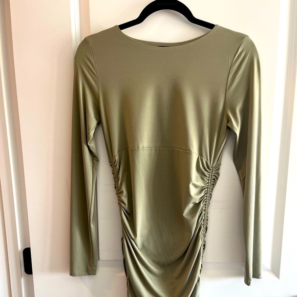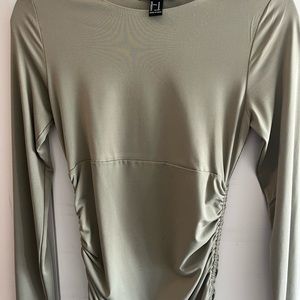 Gently Worn Sage Green Adjustable ties Ruched sides that accentuate your curves