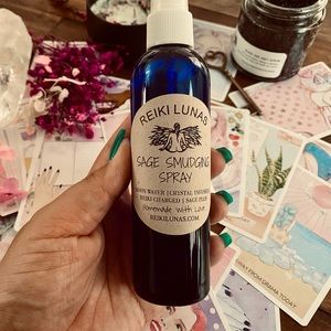 This is my own personal formula of Sage Smudging Spray, it smells unique because in addition to White Sage, it also has a touch of other essential oils, and magical tools, and it works. If you are like I was, that always struggled with Nightmares and spiritual experiences, this is the spray for you. Not only will it help you sleep better, but it will also cleanse your space. I have used it for years in my home, car, office, to clean your Crystals. I have also found that when Sprayed on plants, it gives them a boost as well. You will not find another one like this. It was created through spiritual guidance from dreams and from different life experiences. I have also noticed that for people dealing with toxic relationships it will help you in finding the clarity and strength you need to make the best choices in your life. It will definitely help you be more in alignment with your true self. Crystal Infused + Full Moon Ritual + Reiki Charged.