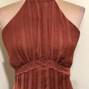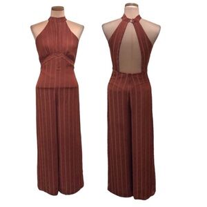 Sage The Label Jumpsuit Size Small Burnt Sienna Wide Leg Cutout Floral Lace