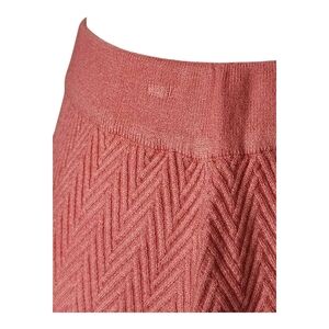This Sage the Label knit mini skirt is a stylish and feminine piece in a warm terracotta/dusty rose hue. It features a textured chevron knit pattern, a comfortable elastic waistband, and an adorable ruffled hem, adding a playful touch to its sleek silhouette. Made from a soft blend of 50% viscose, 28% polyester, and 22% nylon, this skirt offers both stretch and structure, making it perfect for casual wear or dressing up.