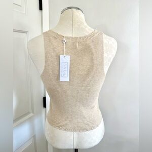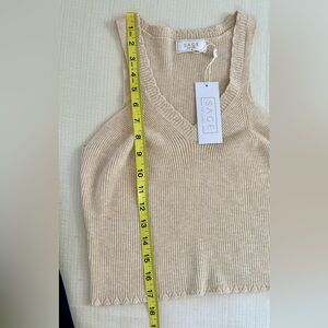 Elevate your basics with this chic knit tank by Sage The Label. Brand new with tags, this top is crafted from a soft ribbed knit in a versatile beige/tan hue. It features a flattering deep V-neckline, wide straps, and a cropped fit that layers easily or wears beautifully on its own.