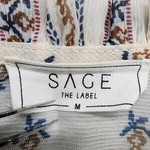 Sage The Label Top Womens M Cream Floral Collared V-Neck Pullover Flutter Sleeve