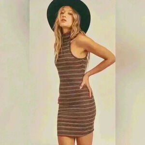 Sage The Label What U Gonna Do Striped Turtle Neck Mini Dress Size M