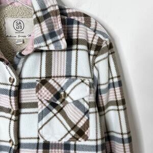 Sage Women's Plush Shirt Jacket S Pink Plaid Fleece Flannel Sherpa Lined Shacket