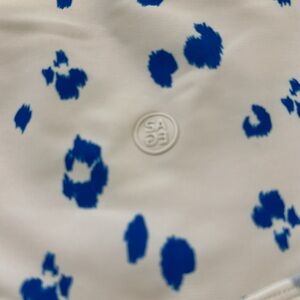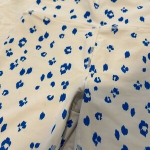 White biker shorts with blue cheetah print. Super soft and comfortable and cute!