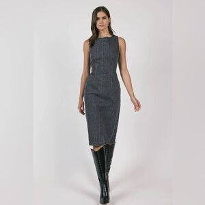 Sage black denim Sheath Midi Dress