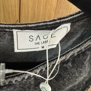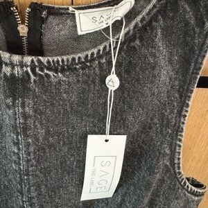 This elegant sheath dress by Sage features a high neckline and a sleek, sleeveless design. Crafted in a sophisticated black denim hue, it offers a flattering fit with a knee-length hemline, perfect for both casual and work settings. The dress's clean lines and minimalistic style make it a versatile addition to any wardrobe.