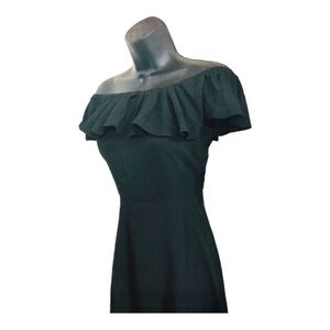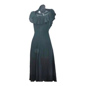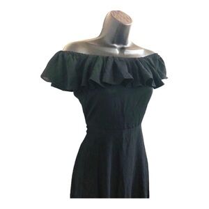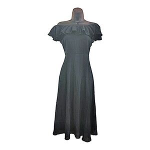 Sage collection black off the shoulder flounce neckline flowy midi dress size 2