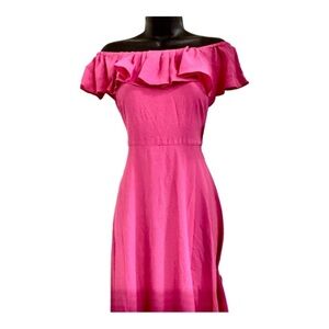 Sage collection pink off the shoulder flounce neckline fit & flare dress size 2