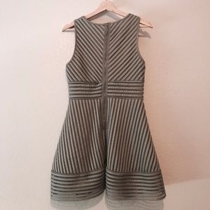 Sage green colored dress with zip up back. The middle of the dress (waist area) had about a 4 inch section of mesh where you can see skin.