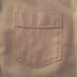 This is the softest Oxford shirt ever created. I can't even describe how soft it is, but trust me, it's the softest Oxford you'll ever wear. It's a soft sage green with a subtle, tiny herringbone weave and full length sleeves. So classic, so preppy, so perfect for fall! Works great with a skirt and blazer for work or with jeans. It's from J. Crew factory, but the quality seems way better than average for their factory line. This shirt is nicer than ones I've bought at the retail store.