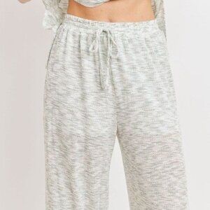 Sage green & white casual cropped pant & cardigan set lined pant knit open front