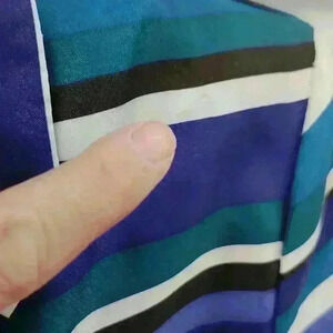 white black green navy blue stripes 3/4 length sleeve has small flaw it's not a rib it looks like it's an impression see picture with my finger in it It might be able to be steam pressed out has shoulder pads