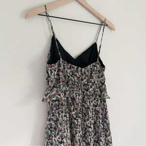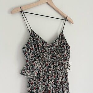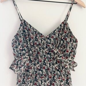 Sage the Label Spaghetti Strap Ruffle Foral V Neck Midi Dress Grey Size Small