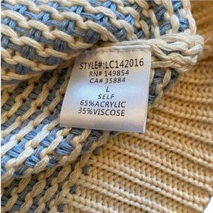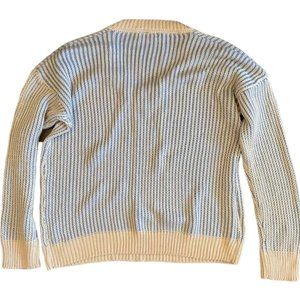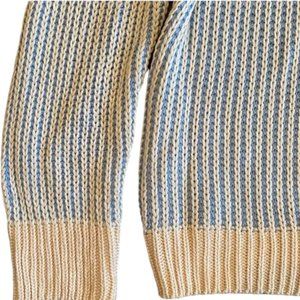 Sage the Label V-Neck Blue & Cream Loose Knit Pullover Sweater Women's Sz. Large
