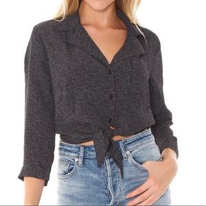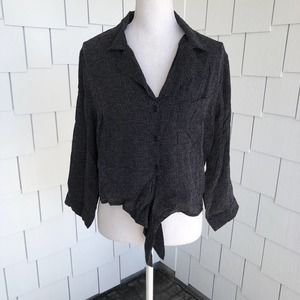 Sage the Label Women's Black/White Micro Dot La Bamba Button/Tie Front Top sz L