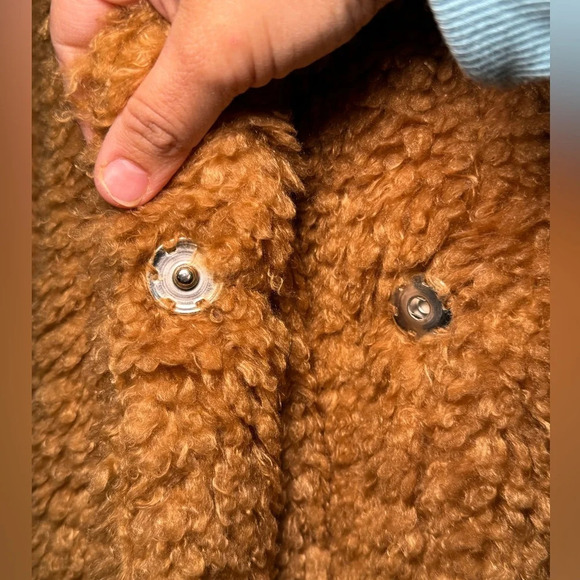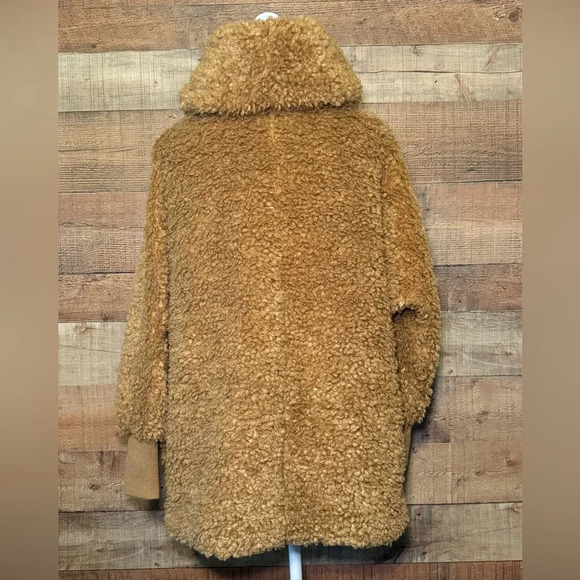 Sage Collective faux fur cocoon jacket, teddy bear style. Women's size XS. Hooded. Fully lined Designed for an oversized fit. Shawl collar and snaps close at front. Sleeves have rib-knit cuffs. Faux fur is super soft and cozy! Pre-loved excellent condition. Great addition to your coat/jacket collection.