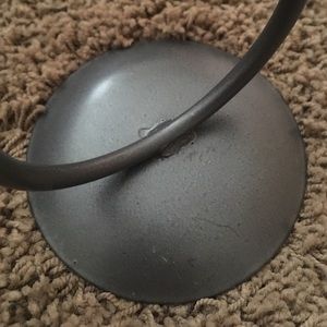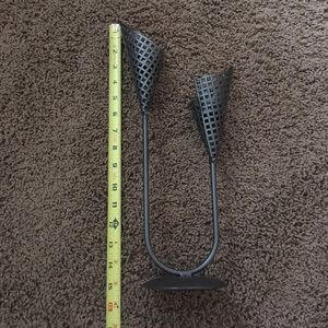 15 inches tall, 7.25 inches wide. Tea light holder. Gray finish.  Used hand full of times. Stand is clear of wax. Comes from a pet/smoke free home.
