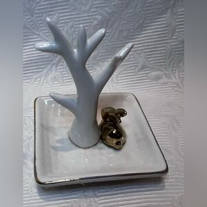 Sagebrook Home White Ceramic Jewelry Tray Decorative Plate Tree Bunny Gift