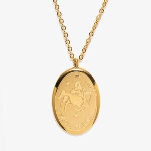 Introducing our Sagittarius Oval Pendant Necklace, a blend of elegance and astrological significance. Crafted from hypoallergenic, waterproof, and tarnish-free 18K gold-plated stainless steel, this necklace ensures lasting brilliance and comfort. The pendant showcases the Sagittarius symbol, representing adventure, optimism, and wisdom. Born between November 22 and December 21, Sagittarians are known for their adventurous spirit and philosophical outlook. Ideal for those who embody or admire Sagittarius traits, this piece adds a personalized touch to any outfit. Celebrate the adventurous and optimistic spirit of Sagittarius with this exquisite necklace, carrying its essence with you wherever you go.