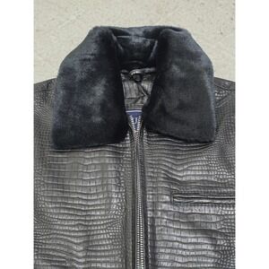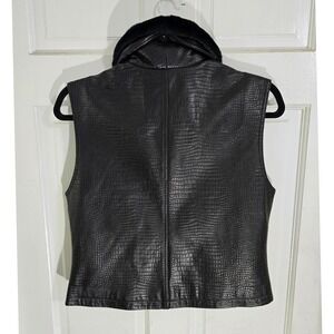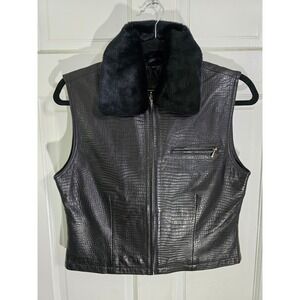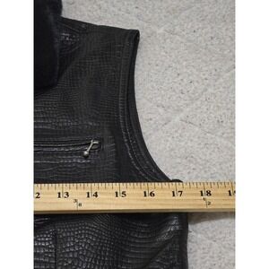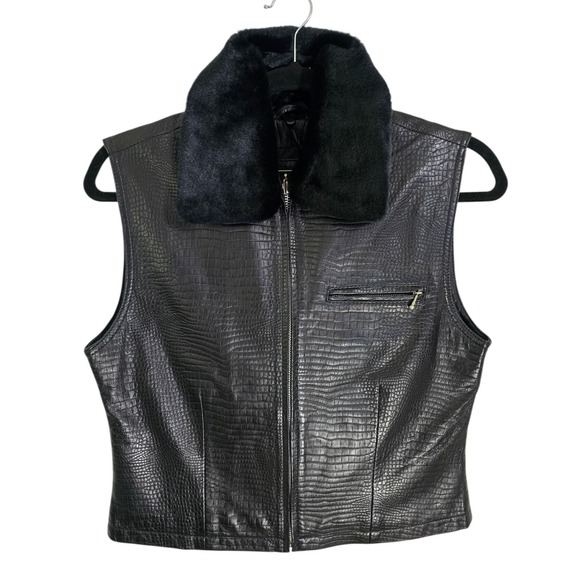 Saguaro Black Genuine Leather Crocodile Embossed Vest Faux Fur Collar Small