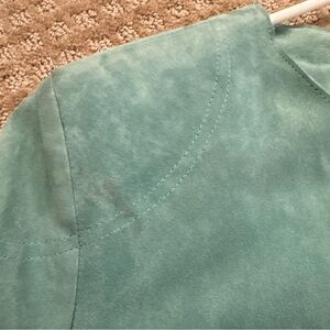 Elevate your style with the Women's Teal Jacket. This elegant piece offers a sophisticated look with its rich teal color, perfect for any occasion. In due for much needed cleaning one very visible stain in front