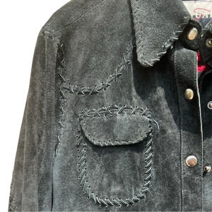 Saguaro Western Black Suede Shirt Jacket w/ Whipstitched Edges Flannel Lined (M)