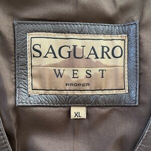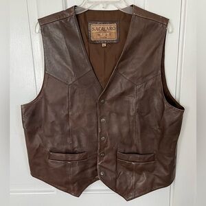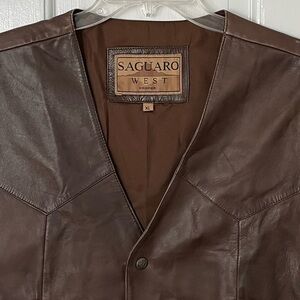 Saguaro by Roper Western Vest Men's Size L Leather Brown Snap Button Rodeo