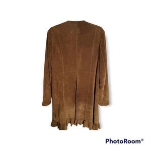 Saguaro Tobacco Suede Leather Ruffle Trim Coat
