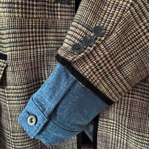 Sahali Plaid Tweed & Denim sz. 12 Lagen-Look Blue Tan Equestrian Riding Jacket