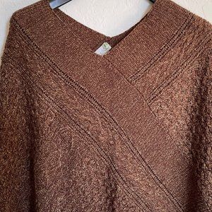 Beautiful chocolate brown chunky knit Sahalie poncho, size X/2X. In excellent pre owned condition. No rips or stains. Perfect cozy shawl for your next outing!