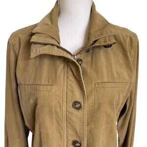 Sahalie Cord Corduroy Jacket L Large Brown Button Zip Pockets Cotton Stretch