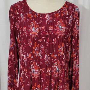 Sahalie Dress Long Sleeve Midi Red Floral Size Medium M
