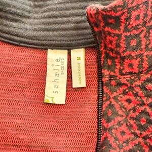 Sahalie Fair Isle Quarter Zip Sweater Dress Knit Casual Red Black Medium