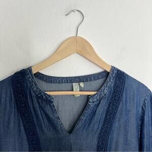 Sahalie Lyocell Chambray Lattice Trim Dress Women’s Size Large