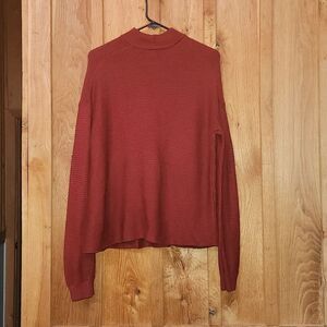 Sahalie Mock Neck Oversized Ribbed Knit Sweater, Medium, Burgundy Rust in Great Condition.