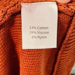 Gorgeous rust orange colored sweater. Thick knit. Crew neck. Split back.