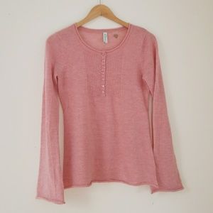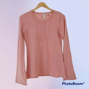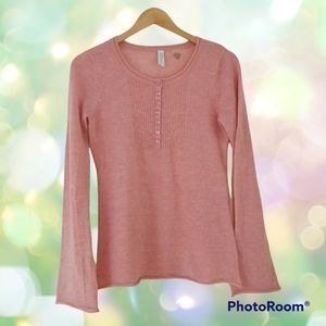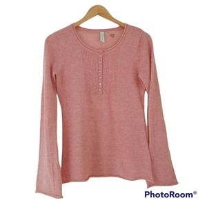 Sahalie/Gettington Womens Henley bellsleeve top in soft peach color knit so cozy soft and lightweight top.