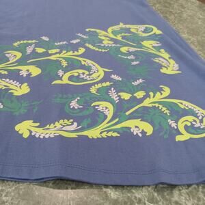 The Sahalie Women's Short Sleeve T-Shirt Dress in size M is a perfect blend of artsy, boho, and beachy styles. Made from a comfortable cotton blend fabric with a floral pattern in a vibrant purple color, this knee-length dress features a scoop neck and a pullover closure for easy wear. Ideal for travel or casual outings, this dress is machine washable and has a stretch for added comfort. Embrace the summer and spring seasons with this versatile and chic addition to your wardrobe.
