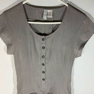 Sahalie Grey Linen Shirtdress. XS. Half Buttonup. Flap pockets Beautiful