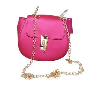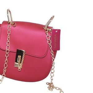 Sahara NWT Red/Pink Crossbody Saddle Bag with Gold Chain Strap