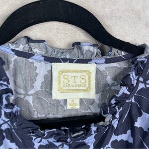 Sail To Sable Autumn Leaf Ruffle Bib Blouse In Blue Women's Size XL