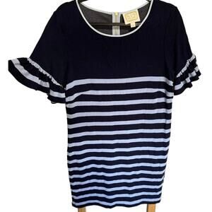 Sail To Sable NWOT Striped Tee Shirt Dress Ruffle Short Sleeve Blue Size Large