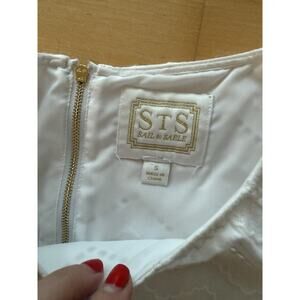 The Sail To Sable STS White Eyelet Short Sleeve Blouse in size Small is a stylish and versatile top for women. Made by the brand Sail to Sable, this blouse features a classic white color with eyelet detailing for a feminine touch. The short sleeves make it perfect for warmer weather, while the regular fit ensures comfort and a flattering silhouette. Perfect for casual outings or dressed up with accessories for a more polished look, this blouse is a must-have addition to any woman's wardrobe.