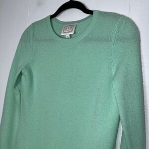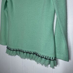 Sail To Sable STS Women’s 100% Cashmere Sweater Fringe Trim Mint Green Size XS